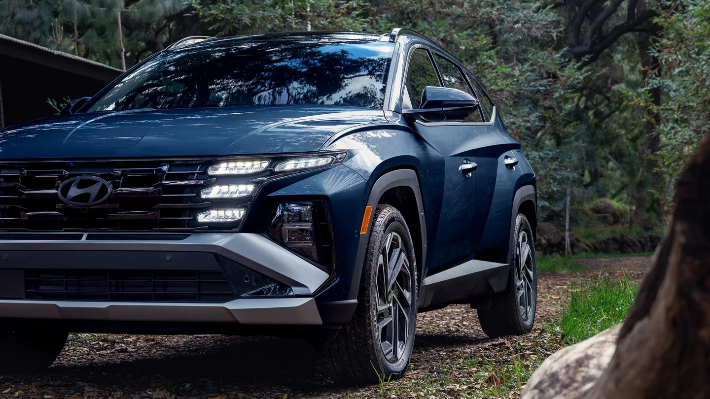 The Hyundai Tucson Hybrid showcases a bold exterior design that blends modern style with aerodynamic efficiency. Distinctive alloy wheels add a sporty, upscale look, while automatic headlights enhance visibility and convenience in changing light conditions. Together, these exterior features give the Tucson Hybrid a confident, refined presence that stands out on any road.